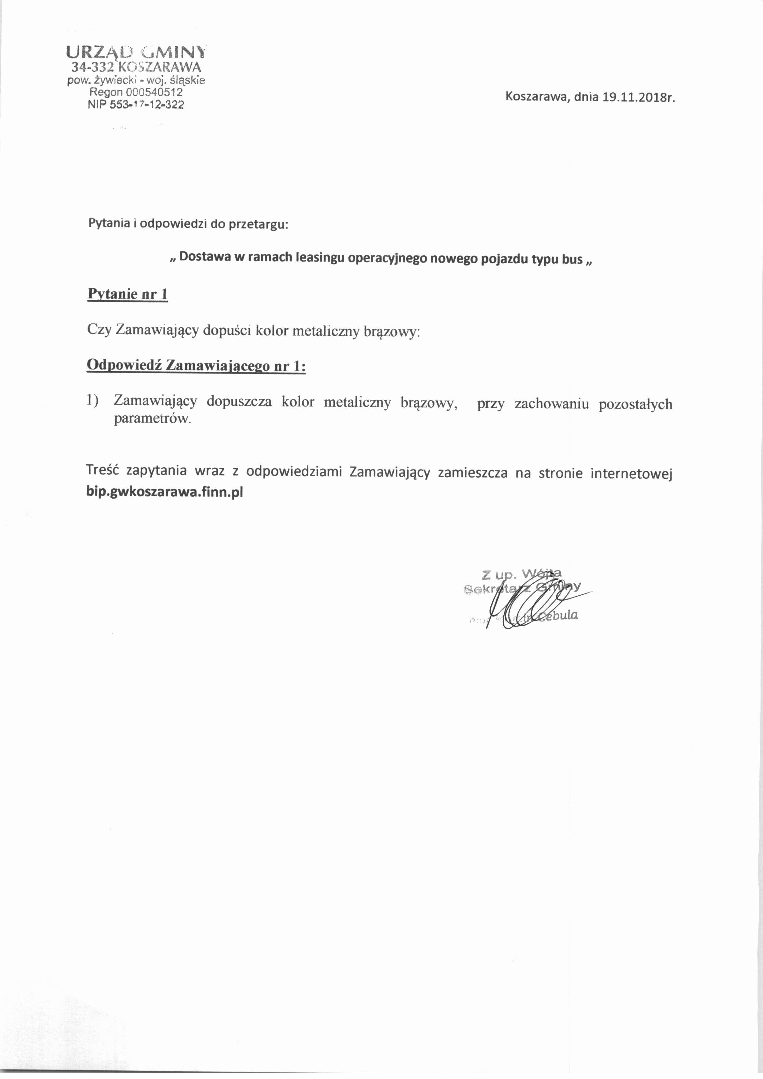 Dostawa w ramach leasingu operacyjnego nowego pojazdu typu bus - IV przetarg nieograniczony